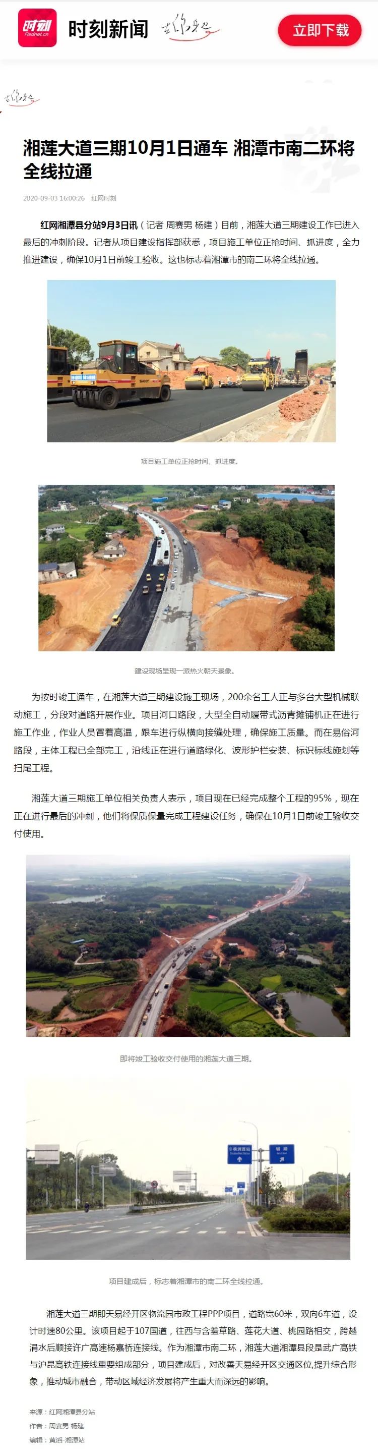 公司成網紅啦!紅網專題報導——我司湘潭天易示范區(qū)物流園市政工程PPP項目10月1日通車