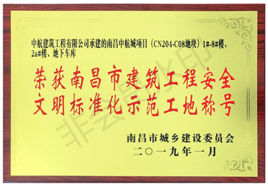 南昌中航城一期項目榮獲南昌市市級“建筑工程安全文明標(biāo)準化示范工地”稱號