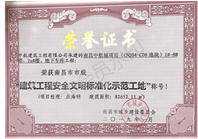 南昌市市級“建筑工程安全文明標(biāo)準化示范工地”稱號。