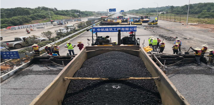 2020年5月,中航建筑天易示范區(qū)物流園市政PPP項(xiàng)目迎來疫情后的第二個(gè)春天,生機(jī)勃勃之景象展現(xiàn)世人:5月22日,第一階段(K12+320-K15+000)工程順利竣工驗(yàn)收;5月23日第二階段的路面層瀝青混凝土開始攤鋪;5月24日,控制性工程K20+390涓水河大橋最后一片T梁架設(shè)順利落成,橋梁梁板全幅貫通。這一樁樁具有標(biāo)志性的事件如一簇簇火紅石榴花滑過被四月洗禮后的清澈天空,特別耀眼。