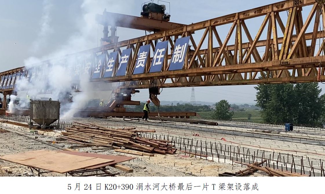 疫情之下的復(fù)工復(fù)產(chǎn),高壓下的我們?nèi)匀粓?jiān)守,我們?nèi)圆煌跣?,我們?nèi)詮娜菹蚯?,這是來自最深層固有的自信和擔(dān)當(dāng)。當(dāng)所有路燈齊開照亮,腳踏昔日為之奮斗的道路,每一盞都是你的聚光燈,它們照亮著路,也照亮著繼續(xù)前行的方向。5月22日,第一階段(K12+320-K15+000)路燈齊亮,順利通過竣工驗(yàn)收,劃上句點(diǎn)。承前啟后,標(biāo)志著成功經(jīng)驗(yàn)形成,5月23日,第二階段路面瀝青混凝土開始攤鋪,標(biāo)志著新起點(diǎn)、新征程、新動(dòng)力匯入,擰成一股神力,繼續(xù)開疆辟土,贏取最后勝利;5月24日,K20+390涓水河大橋最后一片T梁架設(shè)落成,標(biāo)志著項(xiàng)目易俗河鎮(zhèn)段與河口鎮(zhèn)段成功連通,全線正式貫通,為奪取最后勝利打下堅(jiān)實(shí)基礎(chǔ)。三連齊發(fā),絕非偶然,正是不屈的態(tài)度使之成為歷史的必然。鼓舞之余我們?nèi)孕杞潋溄湓?,穩(wěn)打穩(wěn)扎,成功的喜悅總是掛在能笑到最后的臉上。