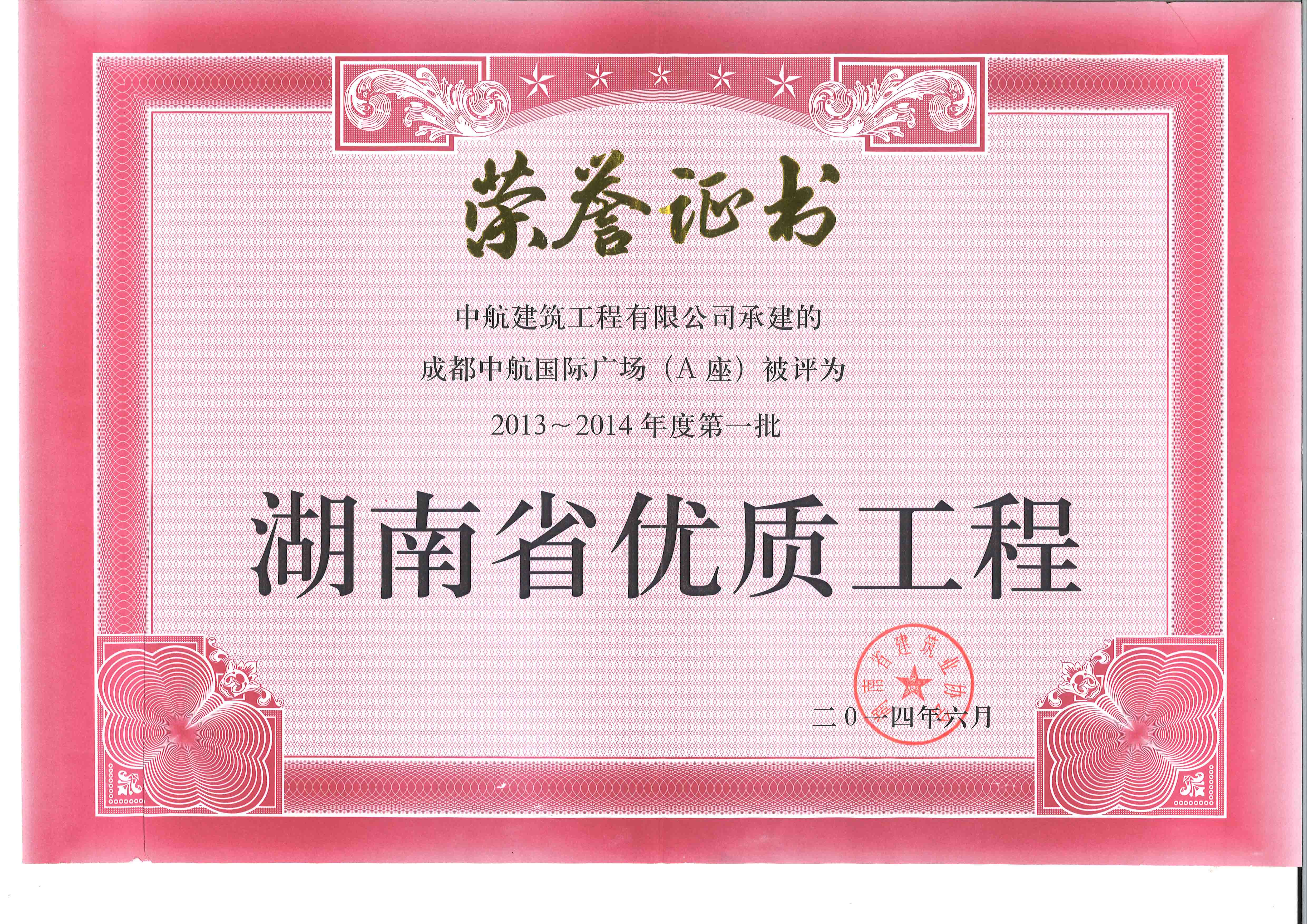 成都中航國(guó)際廣場(chǎng)A座 湖南省優(yōu)質(zhì)工程獎(jiǎng)