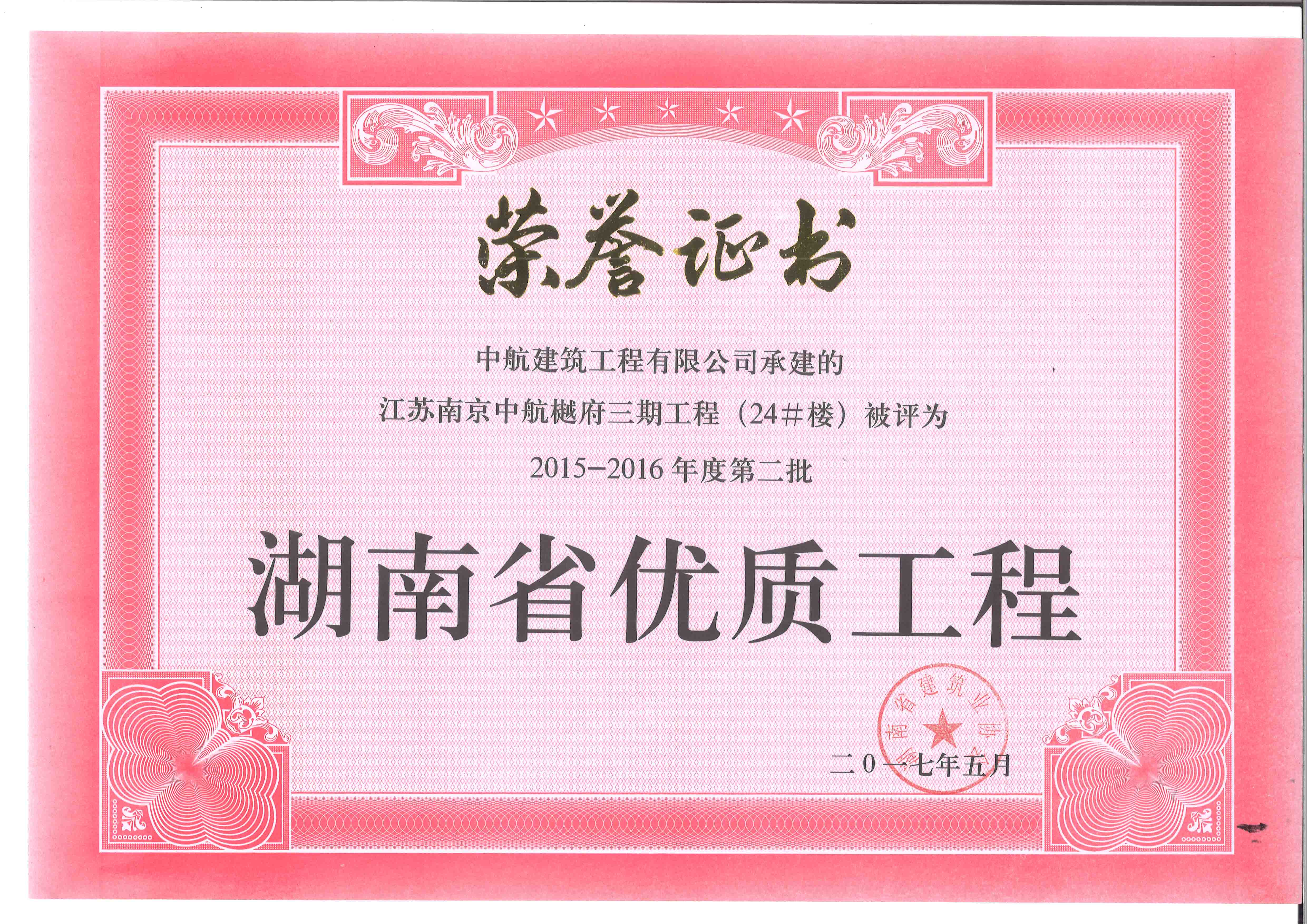 江蘇南京中航樾府三期24#樓 湖南省優(yōu)質(zhì)工程獎