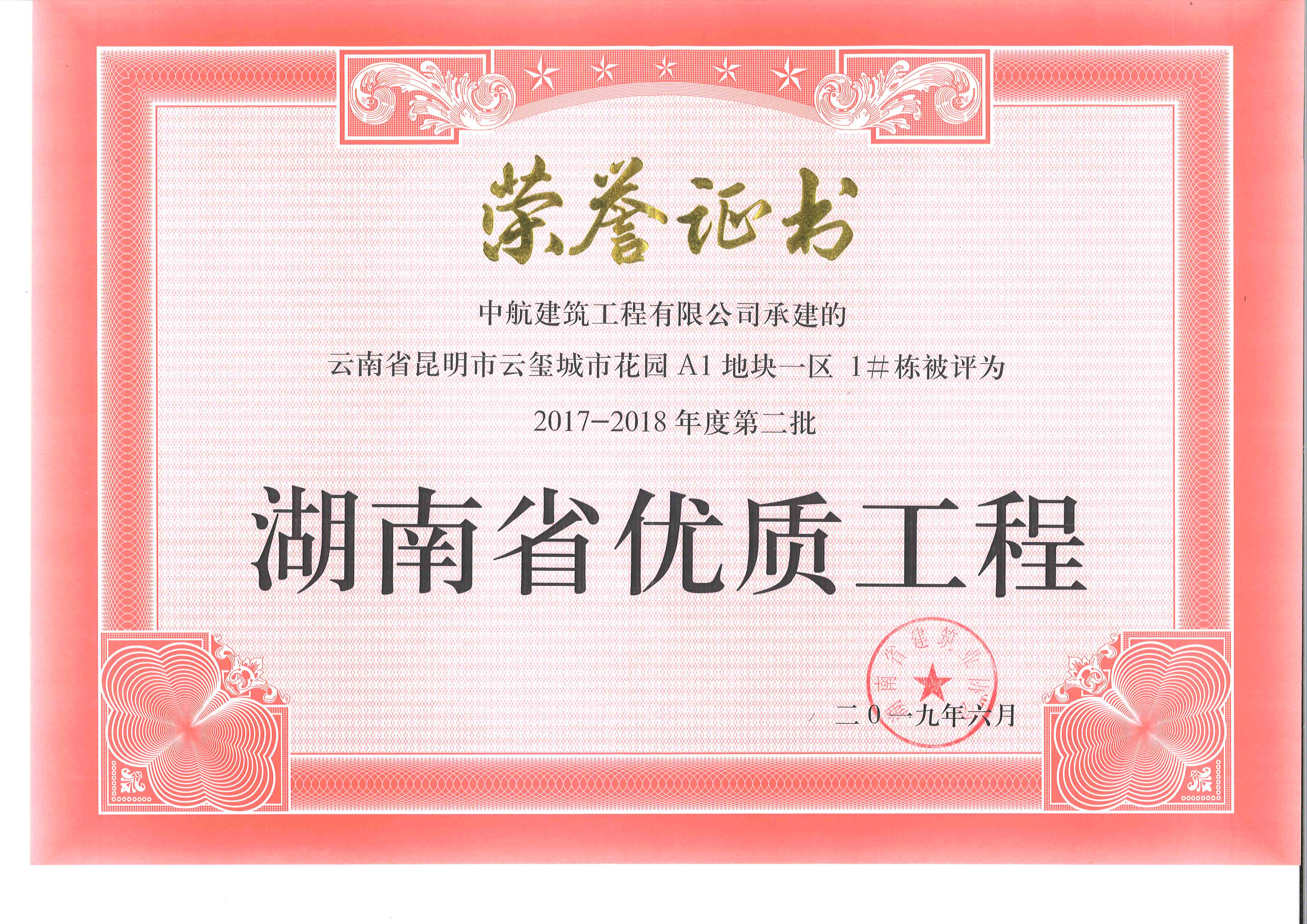 湖南省優(yōu)質(zhì)工程 云璽城市花園A1地塊一區(qū)1#樓
