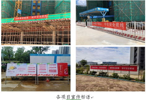 “安全生產(chǎn)月”啟動后,各在建項目積極組織開展各類安全生產(chǎn)活動,按照公司要求懸掛符合公司VI形象的“安全生產(chǎn)月”活動宣傳橫幅,粘貼安全警示標(biāo)語等形式宣傳貫徹公司關(guān)于“安全生產(chǎn)月”活動通知精神,向一線施工人員普及安全生產(chǎn)知識,積極推進(jìn)安全宣傳工作,營造安全活動氛圍。過程中,各項目記錄、整理了各項安全生產(chǎn)月活動開展情況。