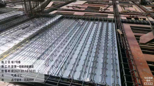 正在施工的寧波兒童公園項目7#棟,采用了新技術新工藝-多維組合樓板即樓承板施工方案,大大提高了裝配率,這也是華潤寧波公司在民用建筑中的首次應用。