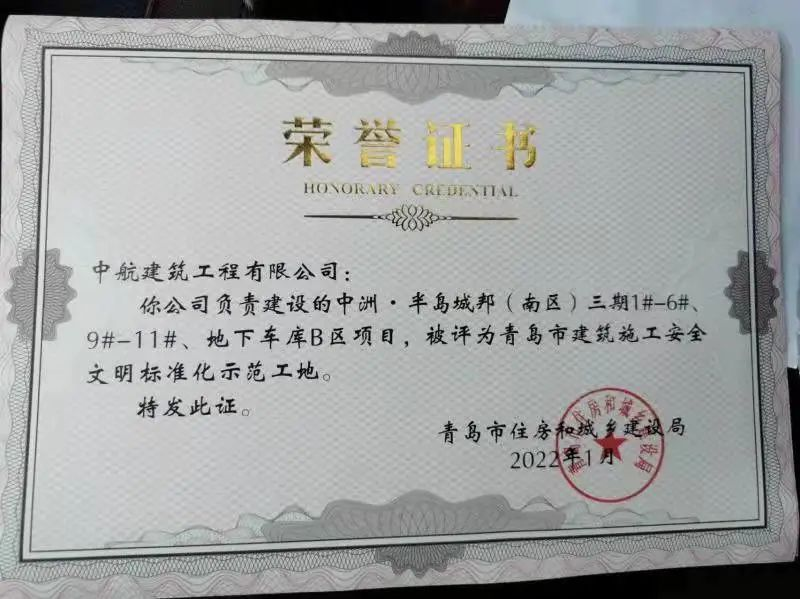 中洲·半島城邦,自開工以來,項目深入踐行精細(xì)化管理,嚴(yán)格推動施工安全生產(chǎn)標(biāo)準(zhǔn)化,文明施工管理和揚塵防控工作,成功在青島市樹立標(biāo)桿!由青島市城鄉(xiāng)建設(shè)局對施工現(xiàn)場質(zhì)量安全體系、安全生產(chǎn)管理、文明施工、質(zhì)量管理、工程監(jiān)理、建筑隊伍管理、綠色施工、工程創(chuàng)新、雙重預(yù)防體系建設(shè)等9個方面進(jìn)行評價后,公布了2021年青島市建筑施工安全文明標(biāo)準(zhǔn)化示范工地名單。其中,我司承建的中洲·半島城邦(南區(qū))三期1#-6#樓、9#-11#、地下車庫B區(qū)項目獲評“青島市建筑施工安全文明標(biāo)準(zhǔn)化示范工地”。