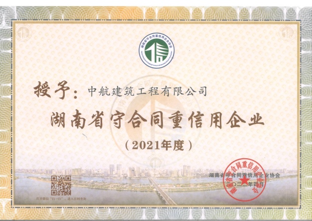 近期,我司獲評“2021年度湖南省及長沙市守合同重信用企業(yè)”稱號(hào)。這是自2016年以來,我司連續(xù)6年獲得此殊榮。