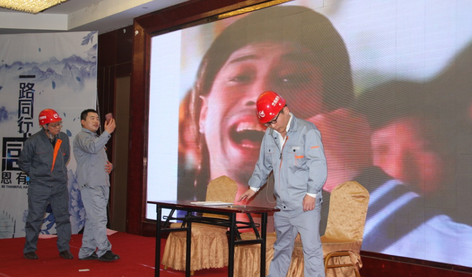 會議現(xiàn)場布置簡單而隆重,年會在員工表演的熱舞《BOOM》中拉開了序幕。首先,公司總經(jīng)理伍倜作了年度總結(jié)報(bào)告,隨后現(xiàn)場表彰了年度先進(jìn)個(gè)人與集體,接下來在“不一樣的我們”之員工風(fēng)采展示環(huán)節(jié),員工自編自演的節(jié)目精彩紛呈:相聲《一定能對》以對對聯(lián)的形式,展示了一年了公司項(xiàng)目建設(shè)的成績,小品《安全生產(chǎn)大過天》以詼諧幽默的語言,豐富夸張的動作,把安全生產(chǎn)深入人心。歌舞《一攬芳華》《我相信》也贏得了滿堂喝彩。