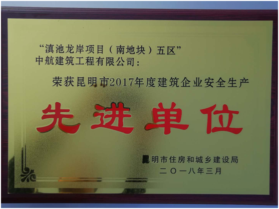 公司榮獲 “昆明市2017年建筑企業(yè)安全生產(chǎn)先進(jìn)單位”稱(chēng)號(hào)