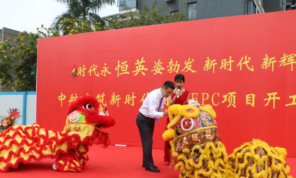 最后南獅賀慶,由王宏海先生點睛喚醒,在威震四方的禮炮聲中,典禮嘉賓同擎金鍬,揚土培基,深圳坪地新時代酒店EPC項目正式開工!