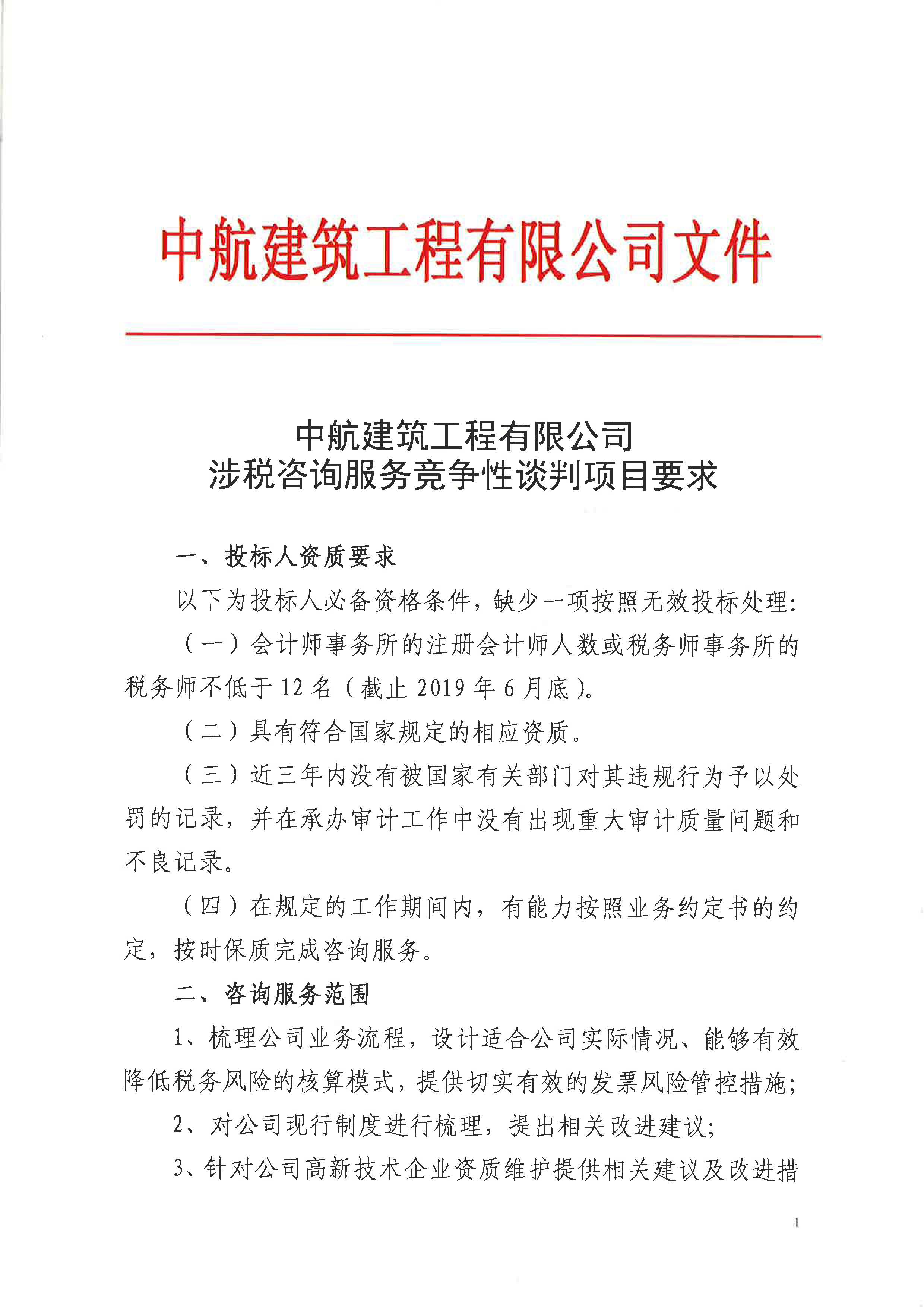 中航建筑工程有限公司涉稅咨詢服務(wù)競爭性談判項目招標(biāo)公告