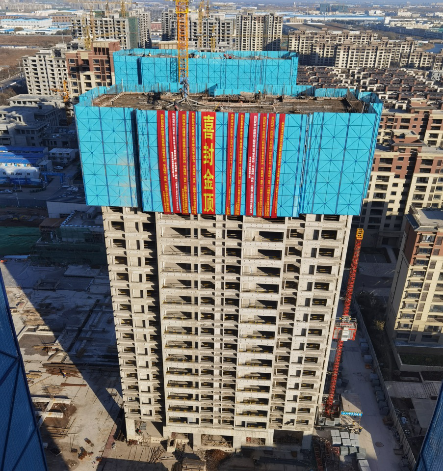 在青島市聯(lián)順地產(chǎn)有限公司領(lǐng)導(dǎo)、監(jiān)理單位代表、項目部負(fù)責(zé)人以及現(xiàn)場施工人員的見證下,3#封頂慶典隆重舉行。