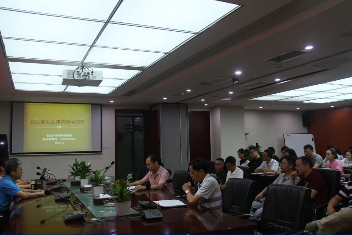 為提高公司員工的法律意識(shí),大力弘揚(yáng)法治精神。2018年8月3日上午,在公司大會(huì)議室舉行了以“公民常見(jiàn)法律風(fēng)險(xiǎn)與防范培訓(xùn)”為主題的普法培訓(xùn)。本次培訓(xùn)講師由公司法律顧問(wèn)、湖南汗青律師事務(wù)所楊杰暉律師擔(dān)任,各部門(mén)員工參加了本次培訓(xùn)。